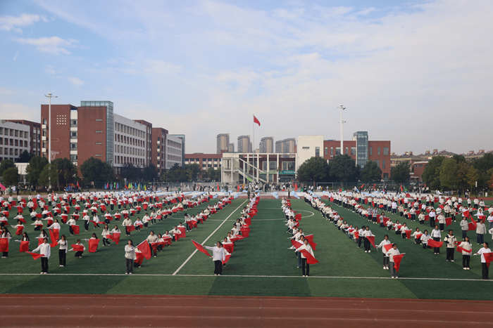上午8点半,伴随着雄壮的运动员进行曲,国旗队、会徽队、鲜花队、彩旗队、运动员代表队等方阵迈着铿锵有力的步伐,精神饱满地有序入场。他们喊着嘹亮的口号昂首走过主席台,充分展现了舒职学子的蓬勃朝气和团结奋进的精神风貌。表演方阵花团锦簇,彩球飘扬;四大学部大旗挥展,整齐划一。全校师生伴着朝阳,摇动彩旗,怀揣梦想,奔赴热爱。