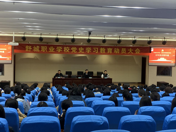 4月15日晚,舒城职业学校开展“百年党史青年说”宣讲团首场报告会。校党委、校团委、学生会、团员青年、入团积极分子、各社团成员代表200余名师生参加了报告会。