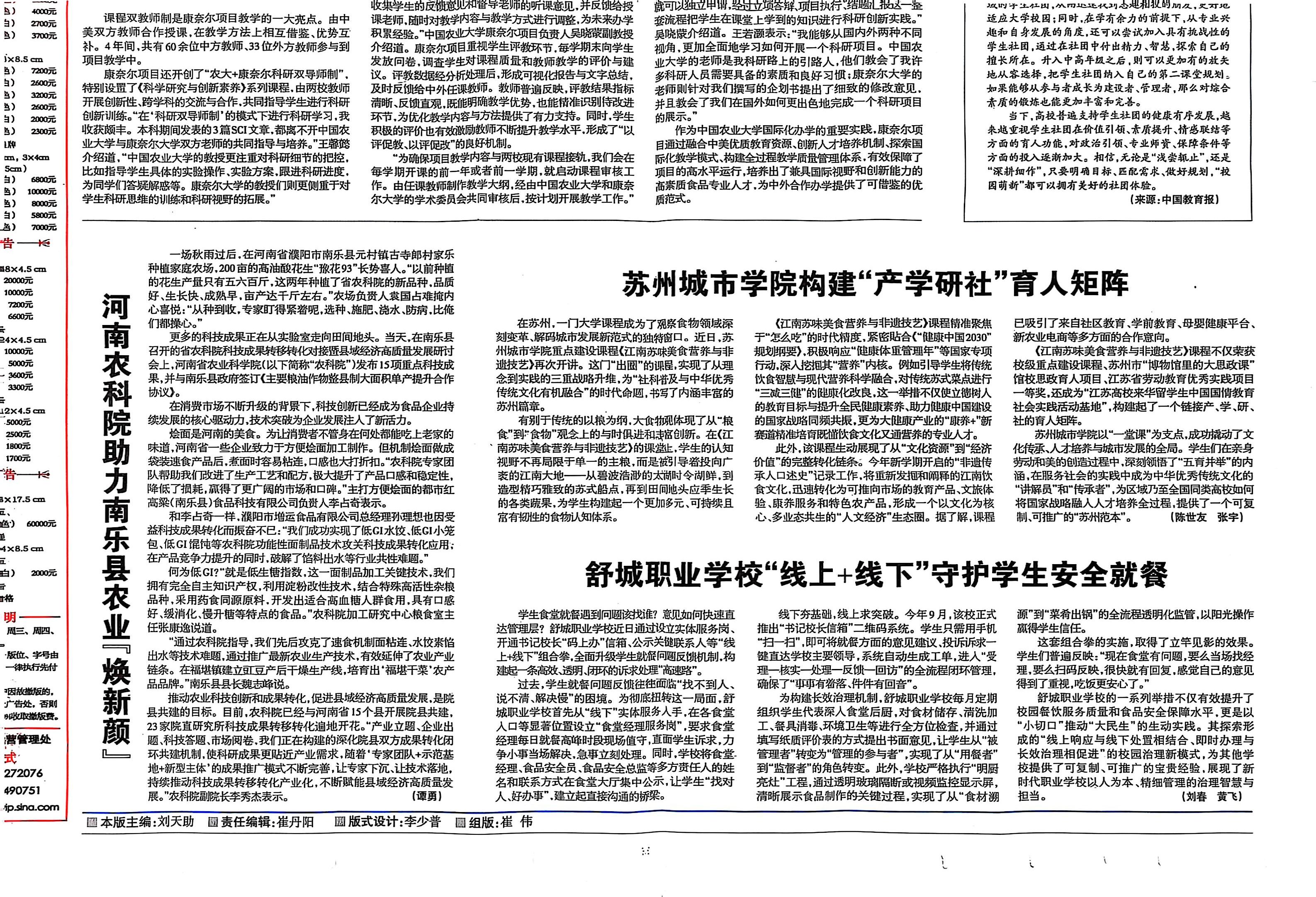 中国食品报:舒城职业学校线上+线下守护学生安全就餐