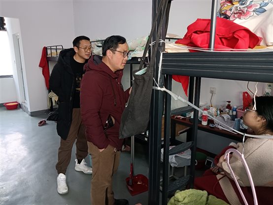 随后,吴勇一行到车间逐个询问正在岗位工作的学生对工作的体验和适应性情况,到宿舍与正在休息的学生交谈,了解学生的住宿、宿舍管理、安全、食堂伙食等方面细节,及时解决学生提出的困难,并对学生开展了一些思想教育。