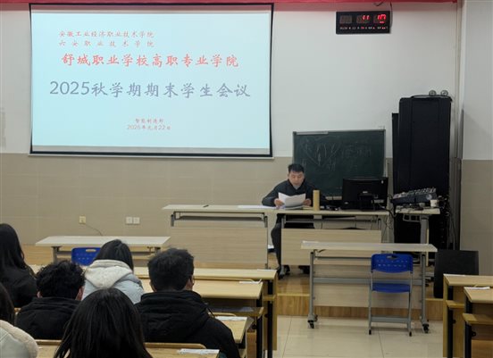 2026年元月22日下午,舒城职业学校智能制造部组织工业机器人、新能源汽车检测与维修两个专业高职专业学院学生召开期末学生会议。会议由智能制造部主任吴相友主持。